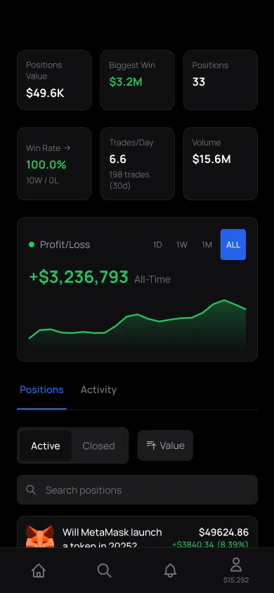 Copy trade any user in 2 clicks. Find your winning strategy and watch it grow.